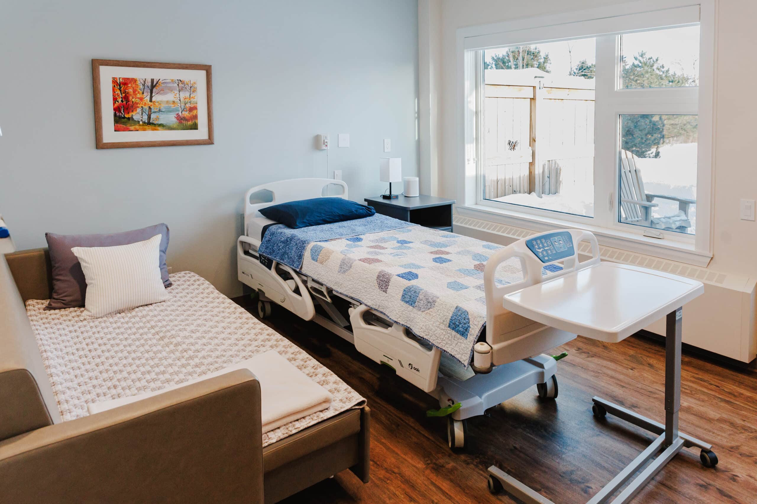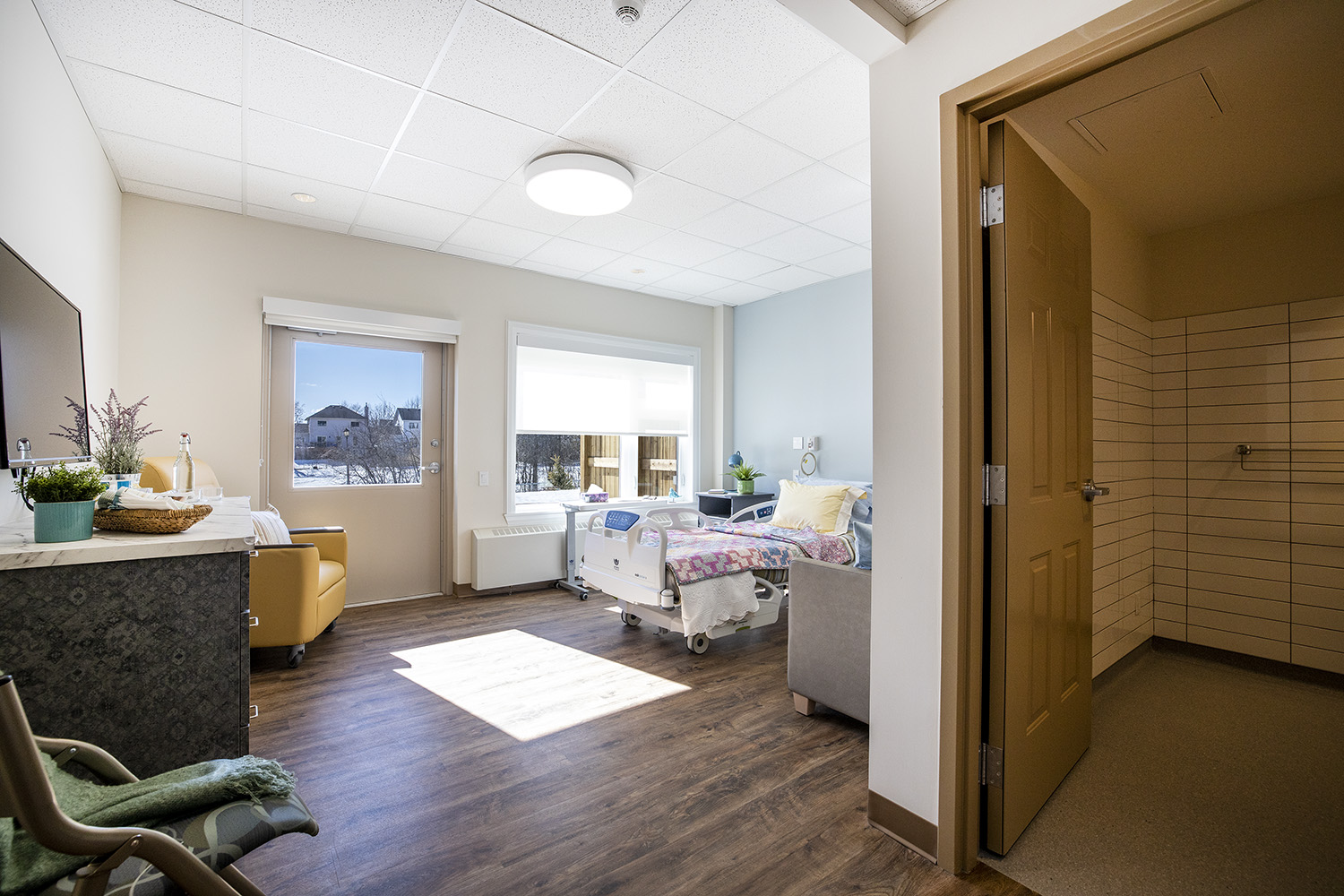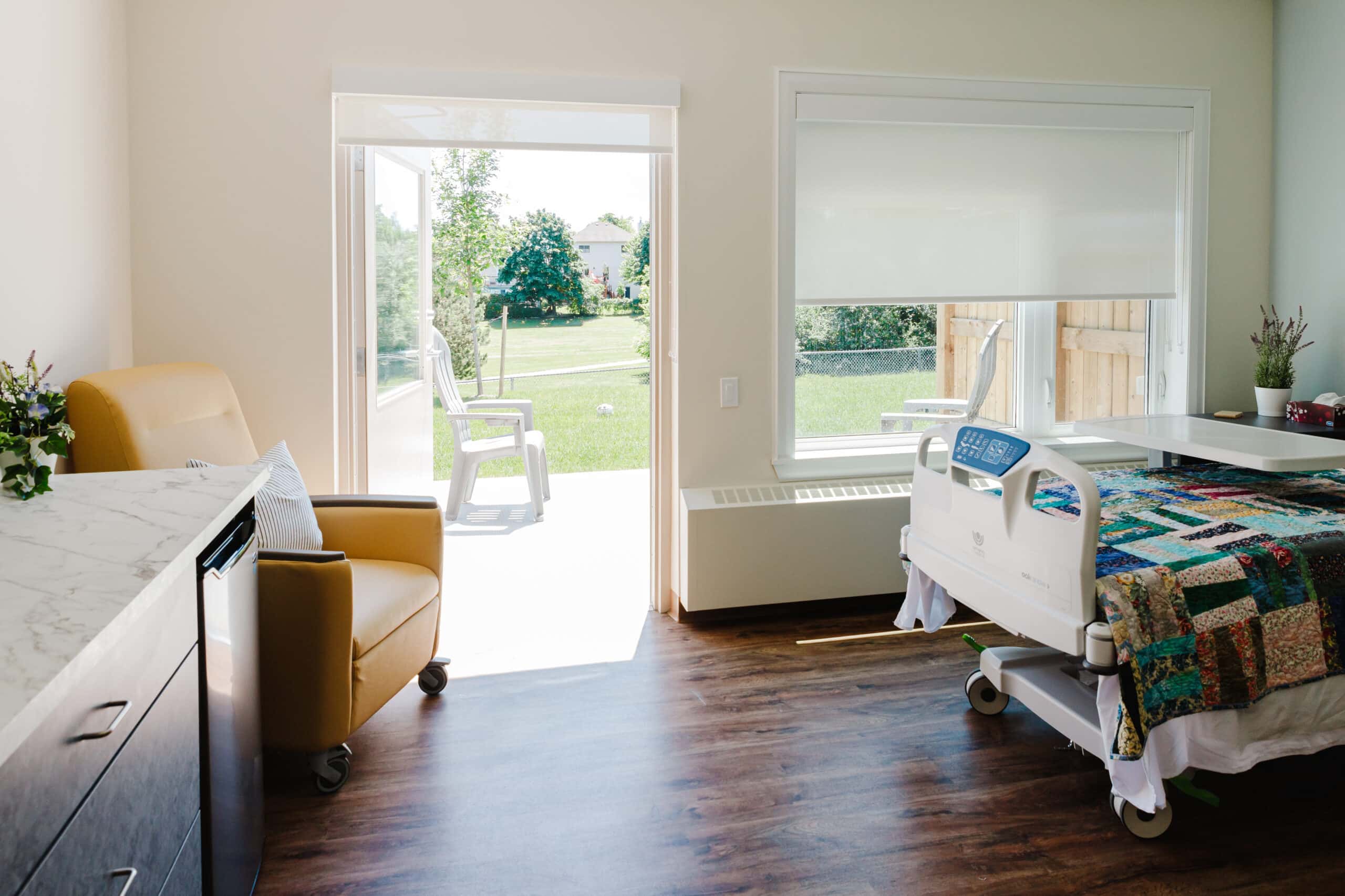Our hospice residence, the Morgan & Sidhu House, was designed to feel like home—a quiet, comforting space where residents and their families can spend meaningful time together.