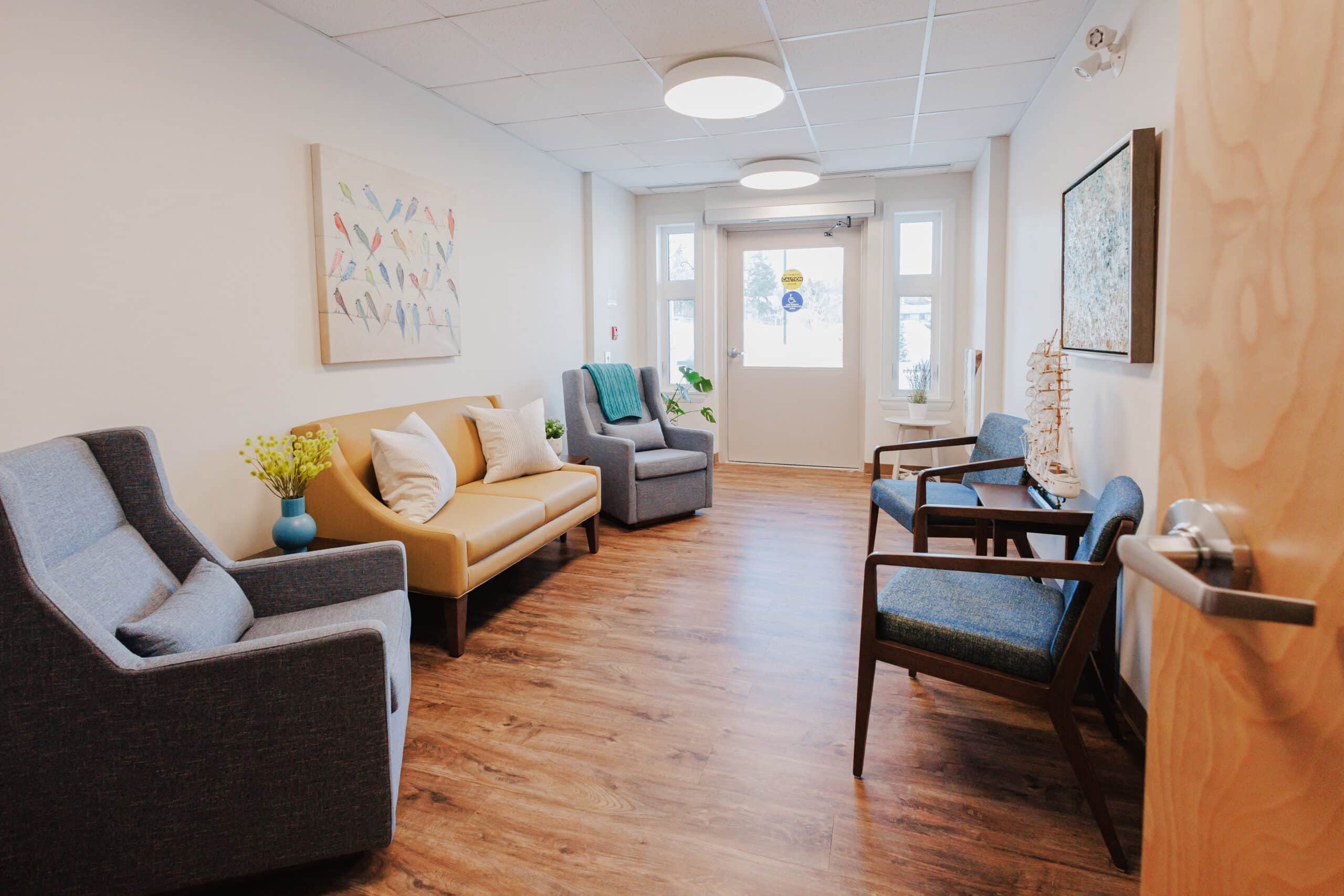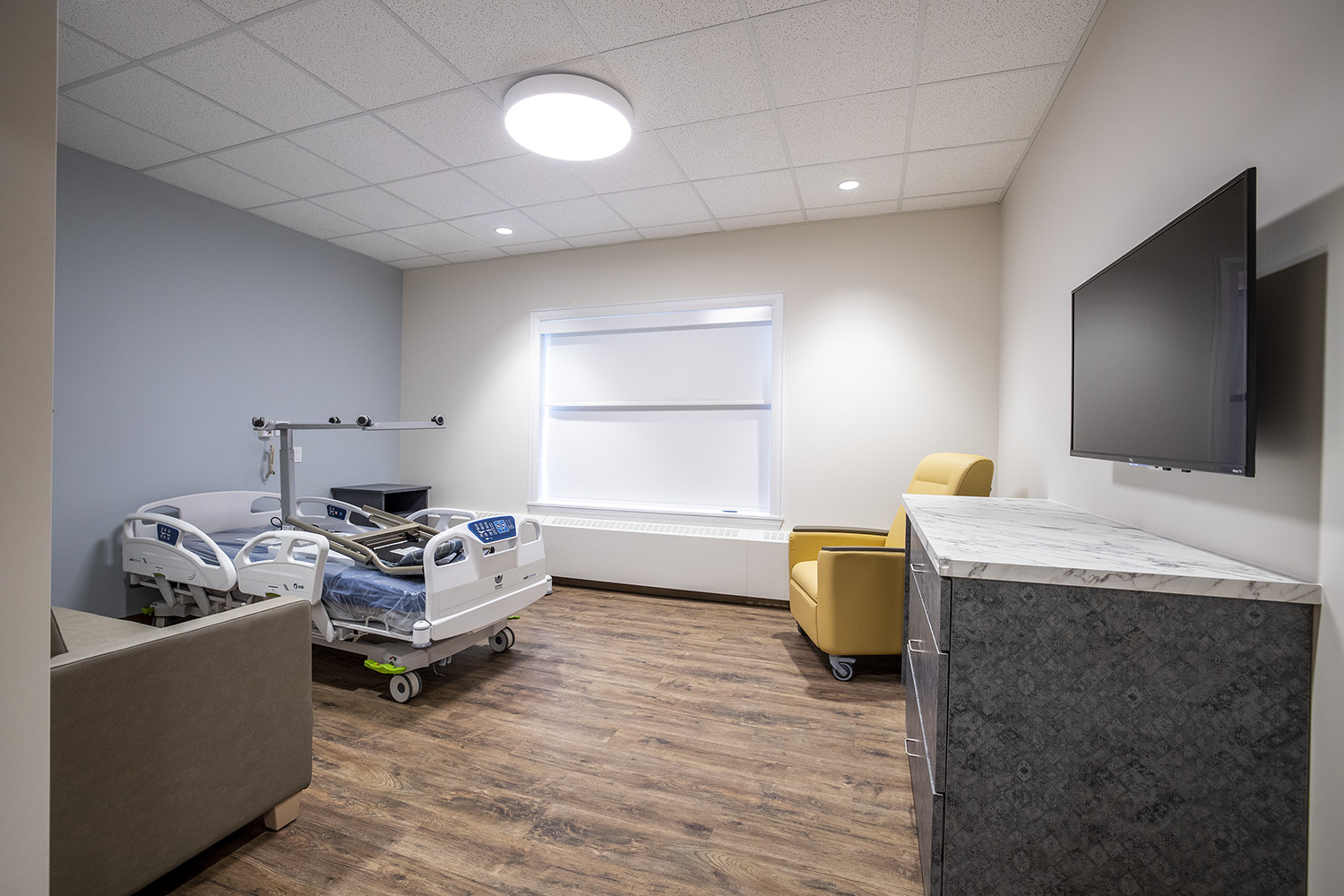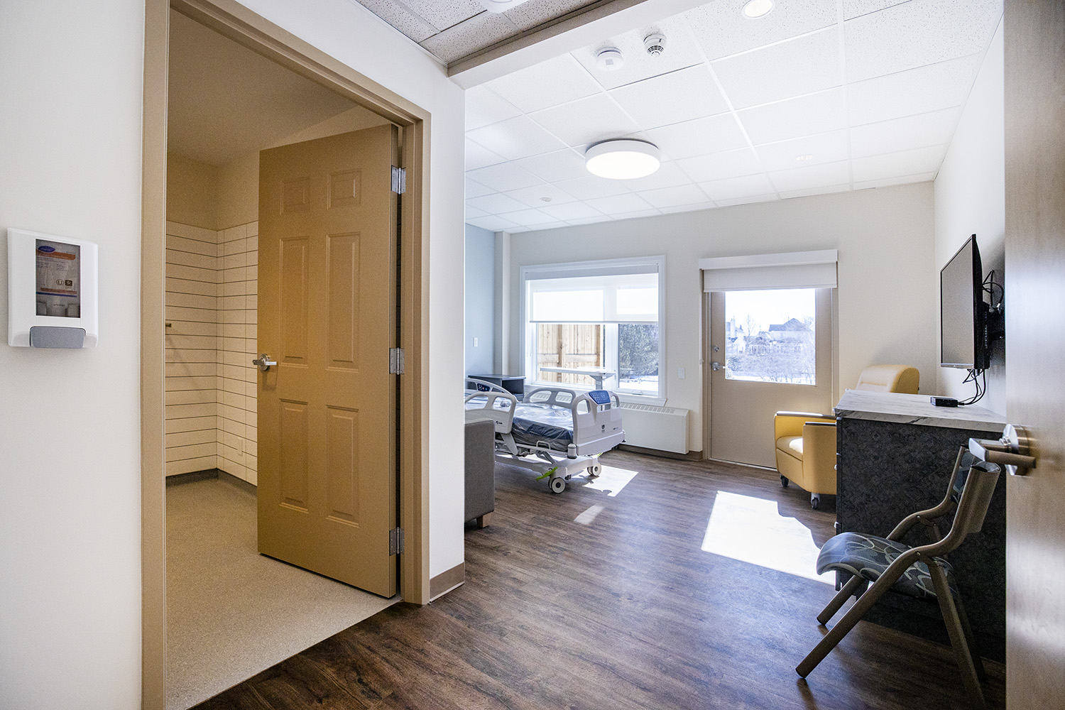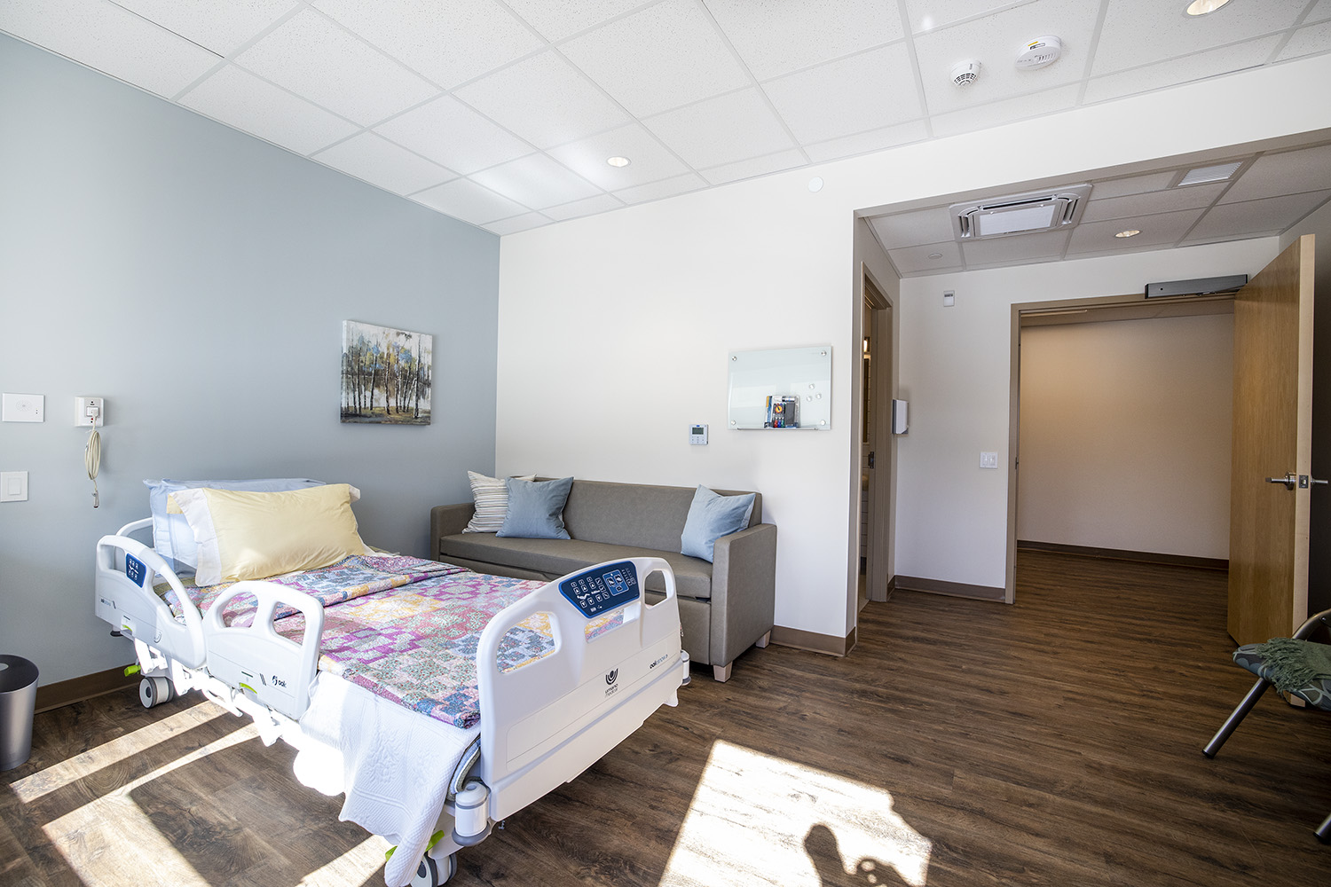 Our hospice residence, the Morgan & Sidhu House, was designed to feel like home—a quiet, comforting space where residents and their families can spend meaningful time together.