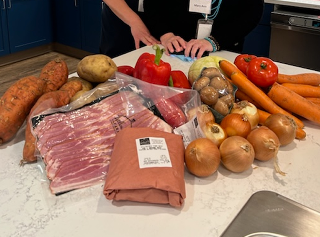 Fresh, home-style meals are prepared daily in our hospice kitchen and served hot to residents. Baked goods and snacks are available throughout the day, and frozen meals can be warmed for late-night cravings.